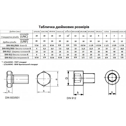 Перевідна таблиця дюймів